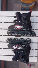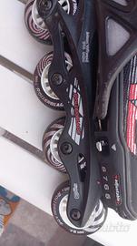 Rollerblade in buone condizioni, leggermente usurati sui lati e sulla parte del freno. Sono ancora presenti tutte le protezioni (in ottime condizioni) e la scatola è integra.