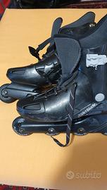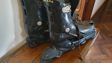 Pattini a rotelle Rollerblade modello stradablade originali dei primi anni 2000. Misura non indicata sugli scarponcini tuttavia comodamente indossati e usati da una persona con piede 39. Peso complessivo (ai fini di un'eventuale spedizione) circa 3 kg. Buone condizioni.