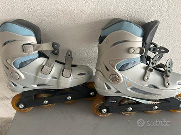 Rollerblade decathlon taglia 38 ottimi per iniziare con un po di segni d’usara che giustificano il super prezzo.15 Euro. Disponibili protezioni a 5 euro. Possibilita acquisto zaino porta trolley a parte 15 euro