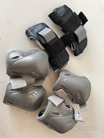 Vendo rollerblade per bambina rosa e bianchi, con protezioni per ginocchia e gomiti.
