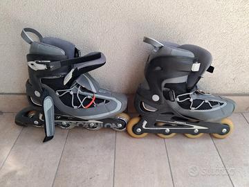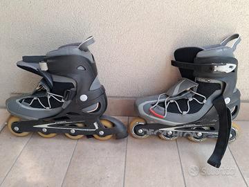 Vendo rollerblade uomo, TG. 45 (io ho tg. 43 di scarpe, misura perfetta), usati pochissimo, completi di protezioni per le ginocchia, gomiti e polsi insieme alla loro retina per trasporto/conservazione.