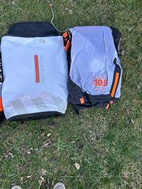 Le ali sono state utilizzate esclusivamente in spiaggia e sempre con la massima cura. Dopo ogni uscita sono state asciugate correttamente e riposte in luogo asciutto. Il materiale è in condizioni eccellenti: non presentano rotture, non hanno mai subito riparazioni e i bladder sono perfetti. Anche la barra è completa e perfettamente funzionante.