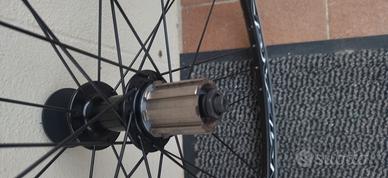 Ruote bicicletta da corsa marca Campagnolo, mod. Calima 9-12 velocità, corpetto per cassetta Campagnolo, materiale alluminio, per copertoncino, sistema frenante RIM.