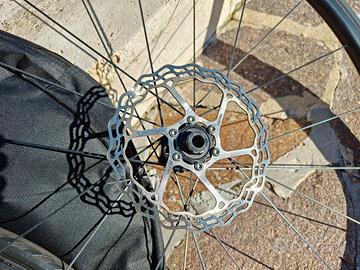 Cerchi DAMIL in carbonio, complete (Dischi, tubolari tufo nuovi, pacco pignoni DurAce 11 v 11-30). Sono perfette, leggerissime usate poco.