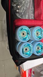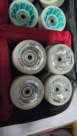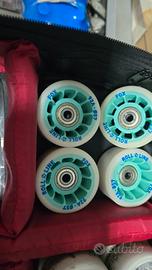 vendo serie ruote ,4 Fox diametro 57 mai usate , 8 ruote 49d diametro 57,8 ruote 47d diametro 57 ,un sacchetto di cuscinetti più la borsa per ruote edea come nuova ,le 47 e le 49 sono state usate 2 volte solo in gara ,vendo per abbandono del pattinaggio per problemi fisici ,tutte le ruote sono muniei di cuscinetti