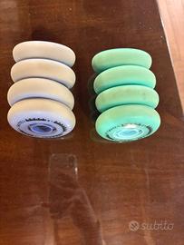 vendo ruote FR per pattini inlinea 80mm 85A usate, ma in ottimo stato n.4 lilla n.4 verde acqua vendo anche singolarmente (4 euro l'una)