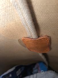 Sacca da tennis vintage Trussardi con porta scarpe .Presenta alcune pieghe e una piccola macchietta misure cm 52 altezza e lunghezza base cm 38