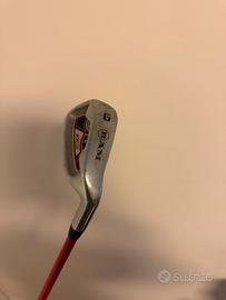 Sacca da golf leggermente usata, ma con tutte le tasche integre e con 4 mazze da gold. Un driver un hybrid e due iron .