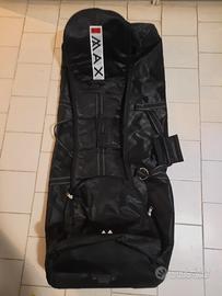 Vendo sacca da golf con 7 ferri e relativa borsa da viaggio con rotelle. Tutto il materiale è usato ma in ottimo stato.