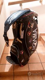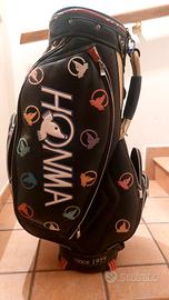 Sacca da Golf porta mazze, marca Honma , con tracolla nuova. la sacca è usata e rovinata all'imbocco delle mazze. Altezza 88 cm. Ben 8 tasche. disponibili altre foto. Prezzo trattabile