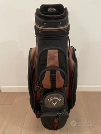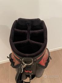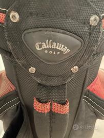 Callaway: sacca da golf da cart, modello big Bertha, sei scomparti molto capiente. Color nero / aragosta con inserti in camoscio grigio. Tutte le zip sono integre e funzionanti . Articolo usato in buone condizioni