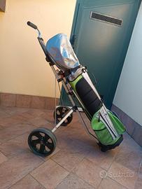 Sacca da golf per bambino con mazze e carrello, usata pochissime volte in buono stato!