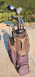 sacca da golf con ferri in buono stato.
