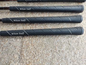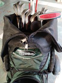 Drive 10 e legno 5 con custodie, ferri 3-4-5-6-7-8-9, P-S e putt con custodia.