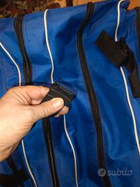 bosco da scherma con ruote e telaio. Due scomparti grandi più borse laterali. è in buonissime condizioni con eccezione di una delle chiusure a scatto da sostituire. Secondo me conviene il ritiro a mano, ma resto a disposizione