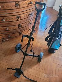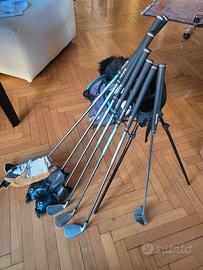 Set da 7 bastoni e sacca da golf, progettato per i golfisti junior alti da 130 cm a 162 cm. Il set comprende: 1 sacca stand 1 Driver loft 16 lunghezza 39.5'' 1 Legno 3 Loft 24 Lunghezza 37'' 1 Rescue 5 Loft 30 Lunghezza 34.5'' 1 Ferro 7 Loft 36 Lunghezza 32.5'' 1 Ferro 9 Loft 44 Lunghezza 31.5'' 1 Sand wedge Loft 56 Lunghezza 31'' 1 Pitter Loft 3 Lunghezza 30'' prezzo 165 euro. Vendo anche anche carrello pieghevole. 35 euro