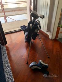 Sacca golf junior , adatta a un bambino dai 6 anni in su , completa di Ferri 7,9 , sand, putt , legno ibrido e legno drive .