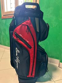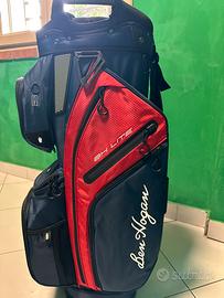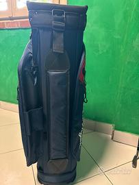 Altre caratteristiche - ampia tasca frontale inferiore con zip sigillate, due ampie tasche per abbigliamento su ogni lato, maniglie per un rapido sollevamento, slot per penna/matita, etichetta in Velcro per i guanti, moschettone per attaccare accessori come asciugamani e telemetri, copertura antipioggia inclusa, tracolla imbottita regolabile, porta ombrello esterno.