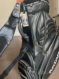 sacca golf Katana in vera pelle compresa di mazze e valigetta da giardino