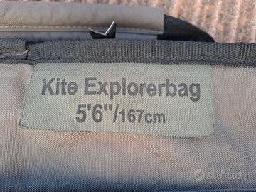 Vendo sacca Explorerbag per kitesurf Pat Love. Lunghezza 167 cm. Buone condizioni, sempre ben tenuta, si può indossare come zaino e ha una tasca molto capiente espandibile in cui metter la vela, oltre a quella per la tavola. Prezzo trattabile