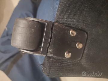 Sacca porta sci con ruote in buono stato. Come da foto c'è una plastica di supporto ruota staccata , ma non influenza l'utilizzo .