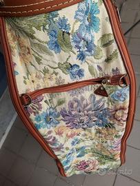sacca portamazze da golf artigianale, con maniglia da portare a mano o portaspalla in morbido pelo, decorazione aritigianale con tappezzeria floreale