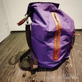 Vendo sacca in tela idrorepellente, usata pochissime volte, colore viola. Misure: altezza cm 70 diametro alla base cm 33. Pratica e capiente, completamente foderata, è in tela pesante di ottima qualità molto resistente all’abrasione ed ha un’estetica attraente. Ha la chiusura con coulisse con una robusta sagola rifinita in similpelle ed un risvolto chiudibile con un cinturino in similpelle, una tasca esterna chiusa con zip, una robusta maniglia in similpelle per portarla a mano, un’apertura verticale con zip ed una tracolla regolabile che ti aiuta a personalizzarlo in base alla tua taglia