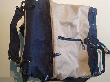alta 55 cm con tracolla e manico laterale vano porta scarpe cerniera nel retro cinghie regolabili unico difetto un buchetto evidenziato nelle foto
