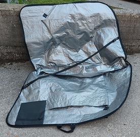 Comprata alcuni anni fa e mai usata. E' imbottita. Lo strato interno protegge il telaio dal calore. Ha le due tasche per le ruote.