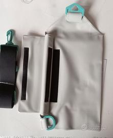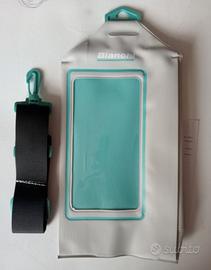 Sacca mono-spalla Bianchi con finestra per smartphone e spallaccio regolabile. Gli oggetti all'interno sono al riparo dall'acqua che tu sia al mare, in bici sotto un temporale o in barca.