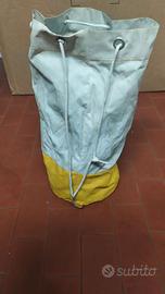 la sacca in poliammide è originale del 1986 è alta 40 cm ed ha un diametro di 20 cm . si può usare come zainetto a spalla.