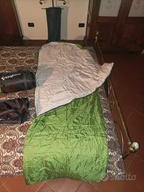 due sacchi a pelo singoli che si possono unire e diventa un matrimoniale