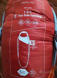 sacco a pelo forclaz acquistato al decathlon, misura M, 170cm, temperatura di comfort 0° . usato solo 1 volta