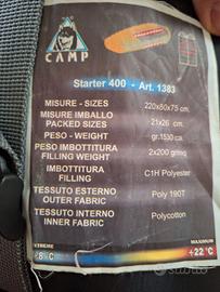 Sacco a pelo CAMP Starter 400 Ottime condizioni 220x80x75 Peso 1530 gr T extreme 8 gradi, T massima 22