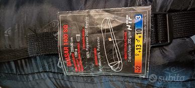Vendo sacco a pelo della ferrino modello 1400 SQ da 1700 ideali per temperature +22 -3 , quindi perfetto in mezze stagioni, io l'ho adoperato nei giorni della merla con temperature -20 ma inserendo al suo interno degli scaldini chimici della Decathlon e con materassino a sezioni, isolato dal suolo con un tappetino.