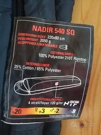 Vendo nr. 2 sacco a pelo Ferrino Nadir 540 SQ con sacco impermeabile di protezione - possibilità di fare un sacco a pelo "matrimoniale" unendoli - caratteristiche in etichetta in foto - usati pochissimo, come nuovi, nessuna macchia - 80 € cadauno oppure 150 € se presi entrambi