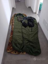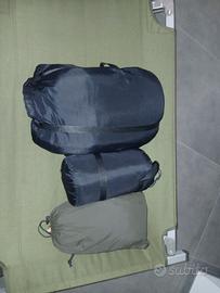 Vendo sacco a pelo 3 elementi per basse temperature ( - 17 ° ) Composto da 2 sacchi,uno estivo e uno medio che uniti compongono l'invernale + copri sacco impermeabile in goretex ( antipioggia ) 120€ trattabili.