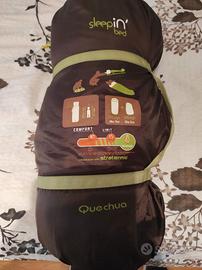 Causa inutilizzo vendo sacco a pelo Quechua usato pochissimo. Il sacco a pelo non ha imbottitura sul dorso perché è fatto per essere agganciato ad un materassino (non disponibile). 10 euro non trattabili escluse eventuali spese di spedizione.