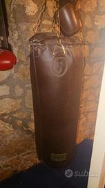 Sacco Vintage da pugilato vera pelle. Guanti originali da allenamento, sacco medio da 20 kg tenuto bene con catena originale. unico proprietario. ritiro a mano