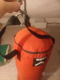 Vendo sacco da box comprato da Decathlon. Usato pochissimo, integro. Completo di moschettone per appenderlo. Vendo per inutilizzo. Ottimo per allenarsi a casa.