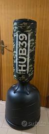 Sacco da box con base da terra. Usato poche volte ,in perfette condizioni, il sacco si può mettere in tre altezze diverse. La base può essere riempita sia con acqua che sabbia , ma io vi consiglio con acqua come ho fatto io ,così una volta che si vuole svuotare la base di acqua é più semplice e comodo. Una volta riempita la base chiudere con il tappo, inserire il sacco sulla base ed è pronto per essere usato. Il Sacco da box è professionale ed è nuovo. Un ottimo acquisto.