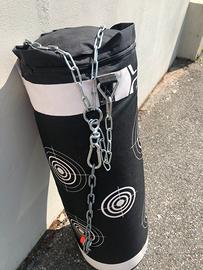 Vendo sacco da box Domyos. Completo di un paio di guanti da kick-box e catene per appenderlo. Usato pochissimo. Vendo per inutilizzo.