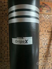 Sacco da boxe autoportante Dripex, ideale per allenamenti. Colore nero con dettagli argentati. Base stabile e resistente.