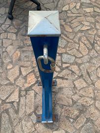 Struttura in ferro 10x10 spessore 10 mm con sacco da boxe nero Leone , la struttura in ferro e’ indeformabile ci vuole solo un buon murondoce appenderlo e vi potete anche aggrappare al sacco vendo a prezzo di realizzo per liberare spazio. Boxe kick boxing e allenamento gambe e braccia e tronco l asse in verro pesa circa 20 kg il sacco circa 30 kg