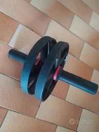Vendo per inutilizzo, sacco da boxe da Kg 15, più attrezzo da parete per trazioni + ruota per addominali + guantoni "Domyos".