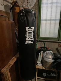 Vendo sacco da Boxe Pride 40 kg riempimento misto. Ottime condizioni, come si evince dalle foto. Utilizzato saltuariamente Ritiro in zona. Prezzo poco Trattabile