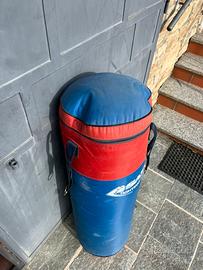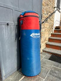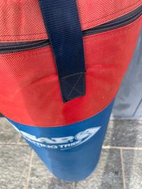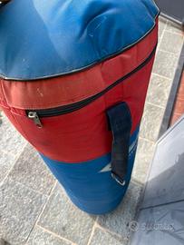 Vendo sacco da boxe marca SAP Fighting Tribe, colore blu/rosso, peso indicativo 25 kg, ideale per allenamento di boxe, kickboxing, muay thai e arti marziali. Il sacco è usato ma in buone condizioni generali, con normali segni estetici dovuti all’utilizzo, come visibile in foto. Zip, maniglie e cuciture risultano presenti e il sacco è robusto e pronto all’uso. Peso indicativo circa 25 kg, ma non sono completamente sicuro: per correttezza lo segnalo come peso stimato. Ottimo per allenarsi a casa, in palestra o in garage.