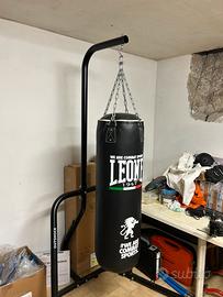 Sacco da Pugilato professionale Leone completo di struttura portante corredato di guanti Everlast 16 Once completi di fasce.