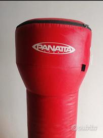 Sacco Fit Boxe PANATTA professionale con cerniera per lavaggio, base stabile con capacità di 45 litri da riempire con sabbia o acqua. Ottime finiture e condizioni. Usato pochissimo. Praticamente nuovo Misure altezza 165 cm, diametro 60 cm
