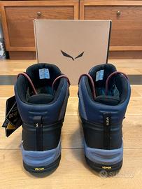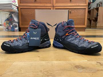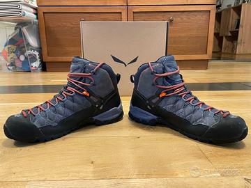 Scarponcino Salewa da uomo taglia 43 (28cm) per escursionismo sportivo e trekking con tecnologia impermeabile GORE-TEX® e suola Vibram®. Utilizzati per 3 escursioni la scorsa estate, come nuovi (unico lieve segno di usura nella parte interna del tallone), completi di scatola originale e cartellini. Vendo per cambio modello adatto ad esigenze differenti.